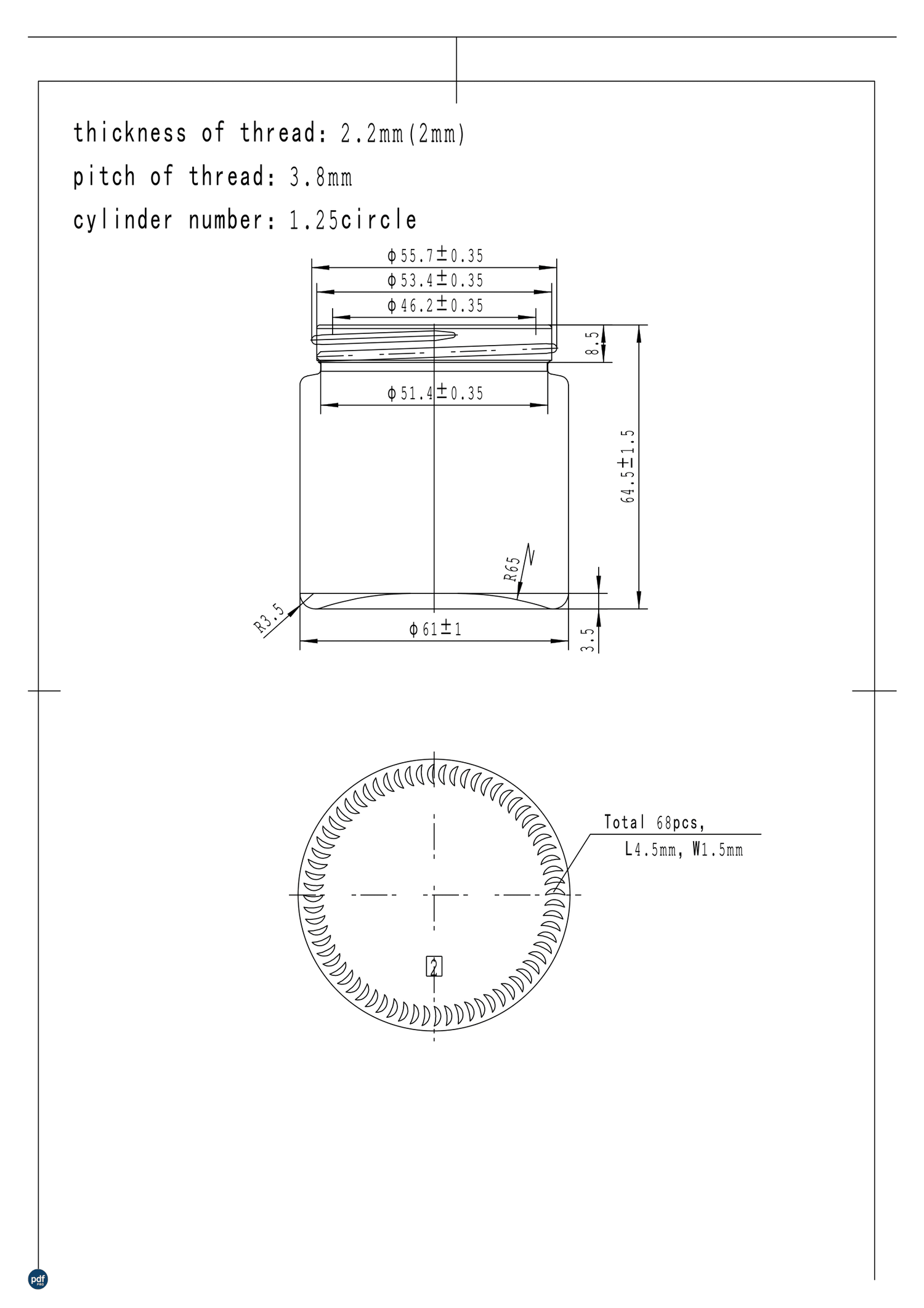 Cap Size Utilized: 56 mm (2.20 inches), 56-410